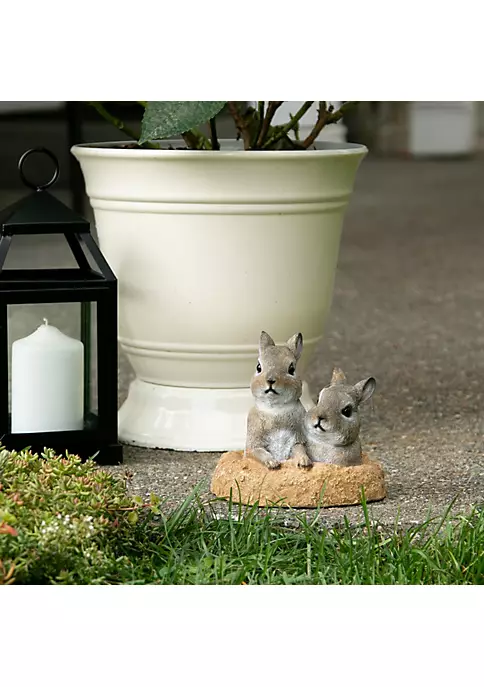 Two curious bunnies look like they are popping right out of their little rabbit hole.