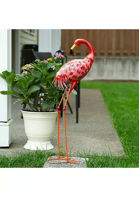 This fun and vibrant flamingo is nearly 3 feet tall! Certain to add personality to any outdoor space (or maybe even indoors!). Metal feathers are amazingly detailed.