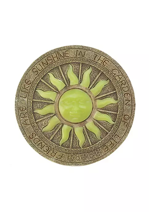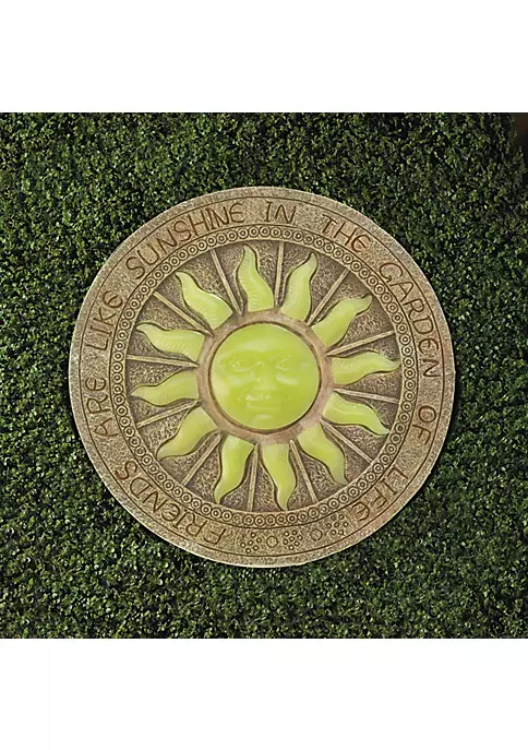 By day, this beautiful stepping stone is a cheerful addition to any yard or garden. A sun radiates from the center outward, and the border is inscribed with the message, “Friends are Like Sunshine in the Garden of Life.” At night, the sun glows from the light collected from the sun during the day. 2.8 pounds. 10.2 inches in diameter x 0.5 inch thick. Polyresin.