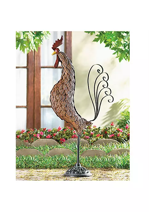 At 31 inches tall, this is not a rooster that you want to mess with! With a filigree base and curlicue tail, and dozens of embossed feathers, this metal sculpture has the appearance of antique handcrafted artwork.