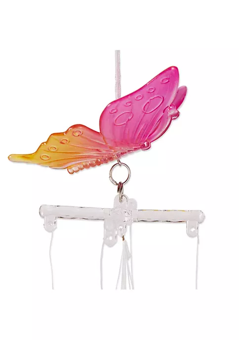 Cheerful acrylic butterflies in rainbow colors will flit around in the wind and make the chimes below sing out a summer tune!